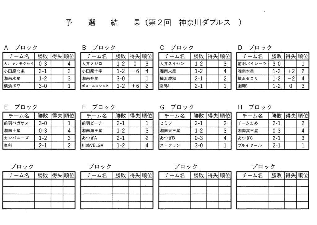 第2回 神奈川ダブルス大会 結果(20260412)