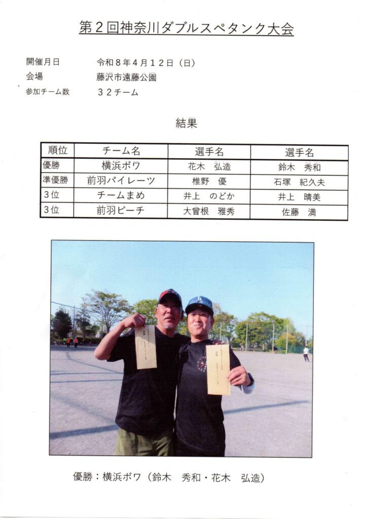 第2回 神奈川ダブルス ペタンク大会開催のお知らせ(20260412)
