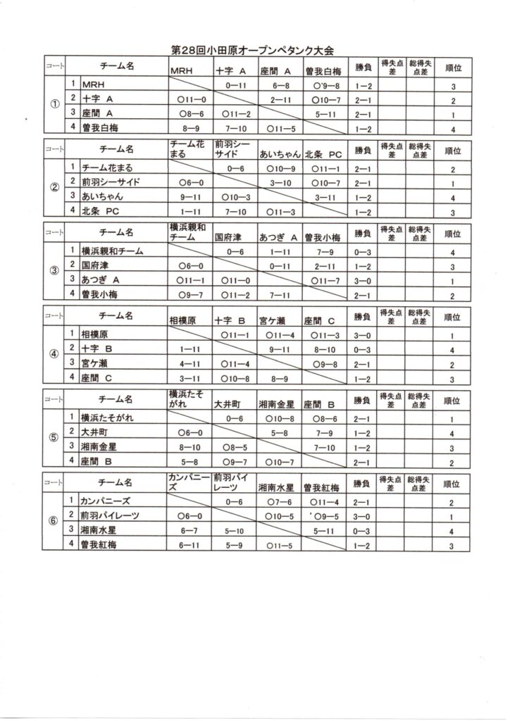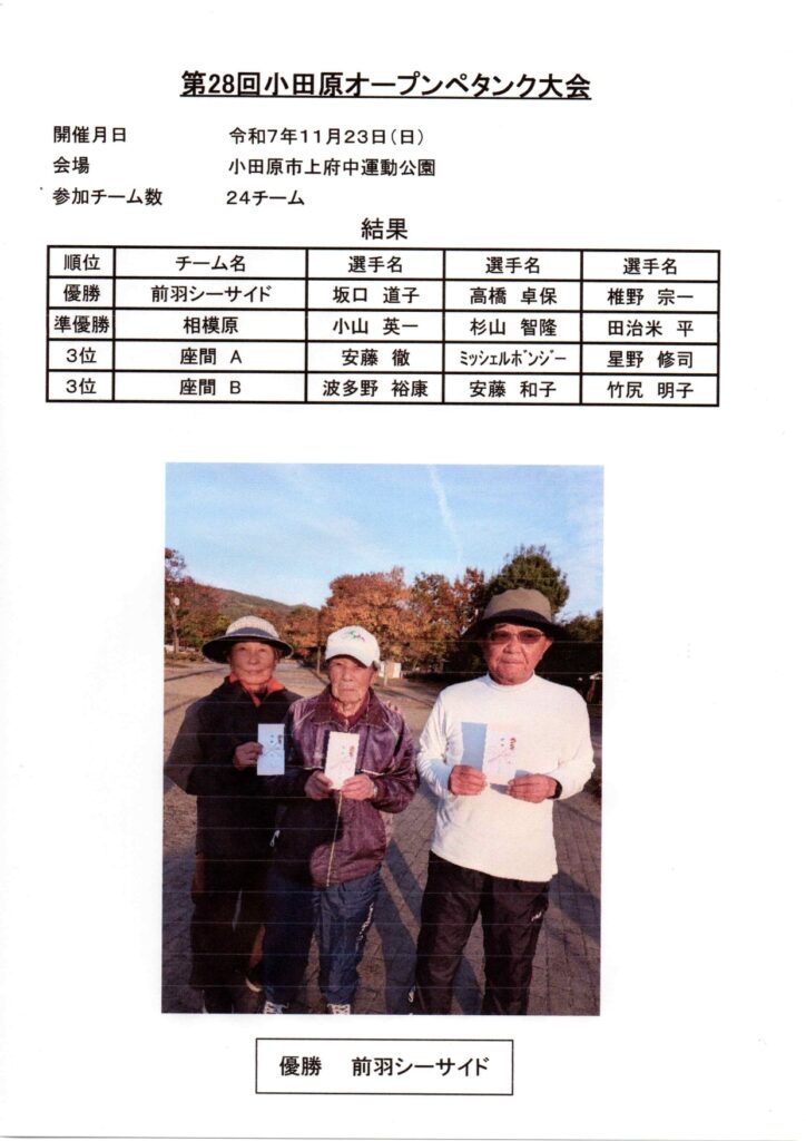 第28回 小田原オープンペタンク大会結果